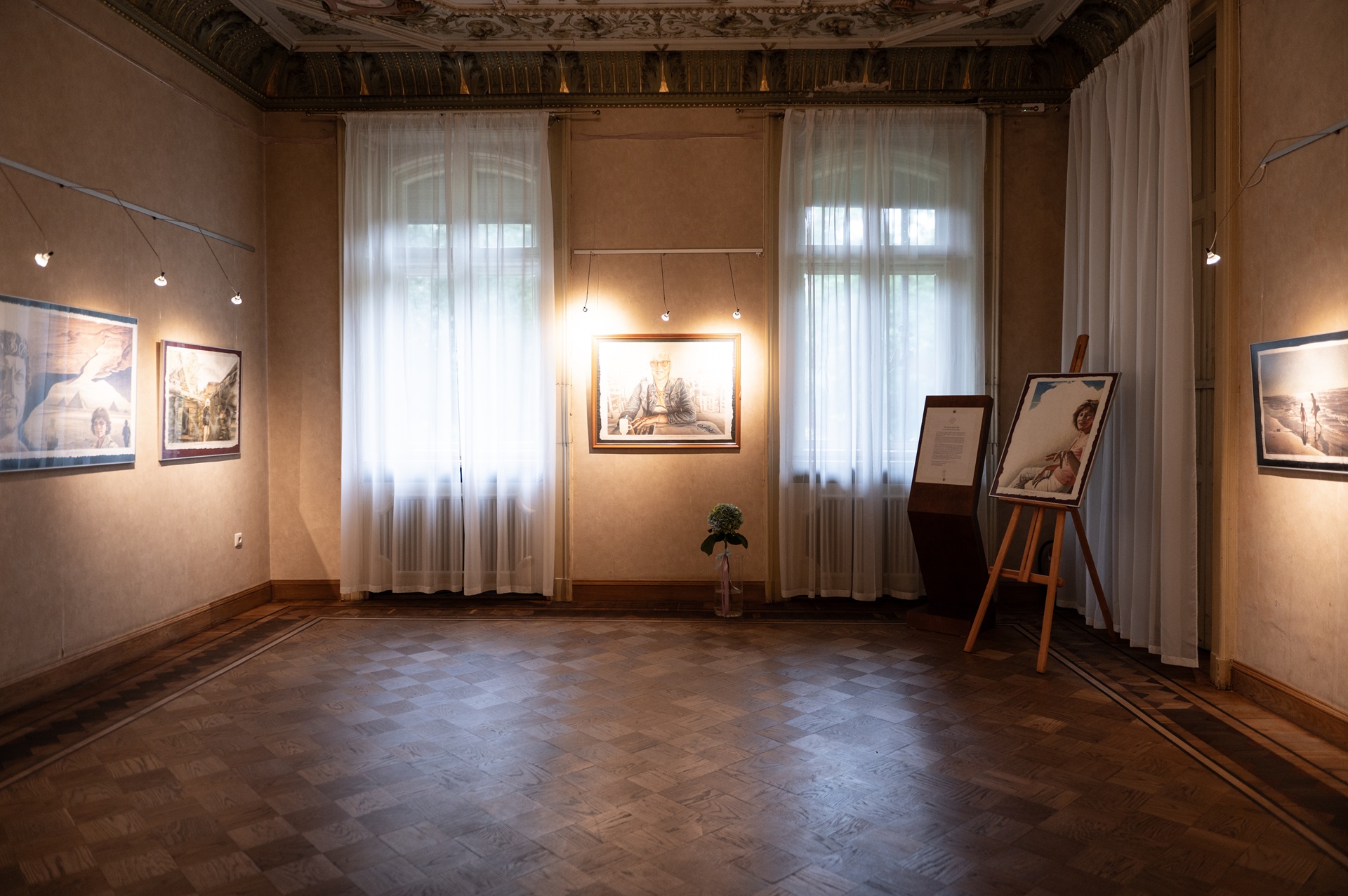 Izstādē skatāmi akvareļi un jauktā tehnikā radīti darbi, kā arī portretu skices. Katrā tverts cits skatpunkts, cits mirklis, bet visos jūtama spēcīgā emocionālā tuvība starp abiem dzīvesbiedriem. Darbi ir sava veida ceļojums cauri viņu attiecībām, kas tās būtiski sekmējušas mākslinieka radošo attīstību. “Portretos nav tikai atspoguļots viņas tēls – tajos ir viss, ko viņa man devusi: ticību, radošuma telpu un drosmi turpināt mākslinieka ceļu,” uzsver Edgars Miķelsons.